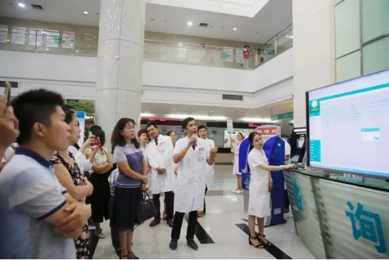 9月22日-23日,全国“医院信息化创新与健康大数据应用大会”在福州召开,360环球在线登录信息管理中心张琼瑶主任在大会上就医院信息化建设做了《信息化创新助力新医改》的演讲。大会期间23日上午,来自国内知名医院北京医院、北大人民医院、北京天坛医院、南京鼓楼医院、武汉市中心医院等与会代表专家一行120余人莅临我院参观考察医院信息化建设。