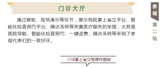 代表们共分4个组,先后参观了我院门诊大厅、住院病房、中心机房等处。