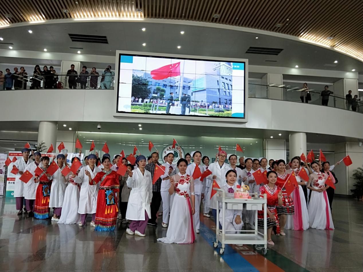 ▲在省立金山医院的专科义诊现场,快闪《我和我的祖国》带来现场热烈的气氛,患者和医护一同加入了歌唱的行列。