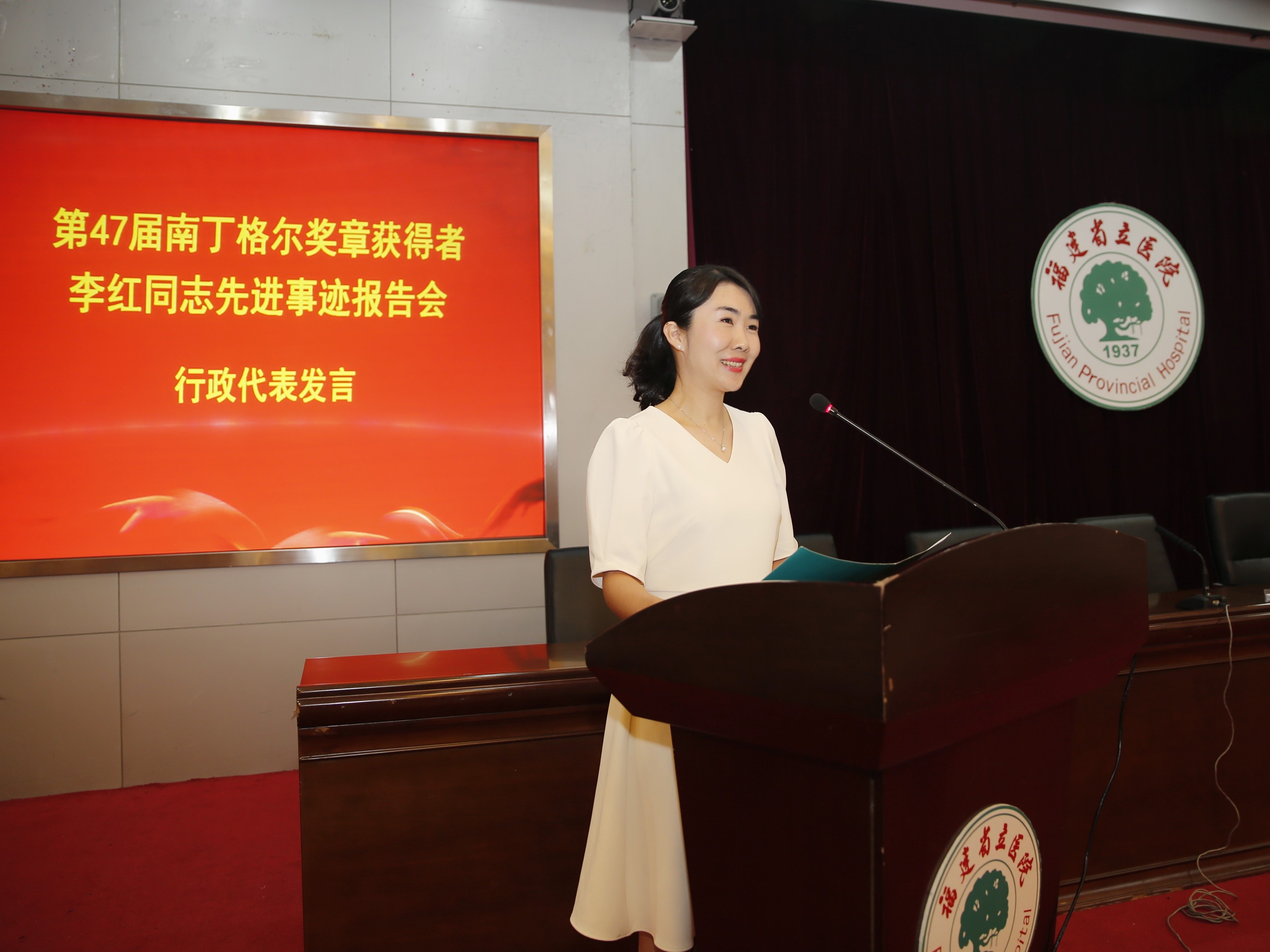 党委书记、院长朱鹏立首先对李红同志获得第47届南丁格尔奖章的殊荣表示热烈的祝贺和崇高的敬意。他指出,李红同志近30年来通过个人的不断努力、不断奋斗,在护理临床、护理教育、护理研究、护理管理等方面倾注了心血,这份荣誉是个人的荣誉、是两院护理同仁的荣誉,更是360环球在线登录、福建省立金山医院的荣誉。他号召全体员工向李红教授学习,一是学习李红同志对理想信念的不懈追求。全院员工要在学习中牢固树立正确的世界观、人生观和价值观, 坚定崇高的理想信念;要用实际行动践行健康中国的历史使命,不辜负全民健康的历史重托。二是学习她爱岗敬业的责任担当。牢记全心全意为人民服务的宗旨,自觉将以人民为中心的发展理念根植于心、落实于行。三是学习她无私奉献的职业操守。李红同志时刻关心病人疾苦,处处做“有心人”,用情怀和知识温暖照顾病人,全心全意服务患者,脚踏实地、勤奋工作,为我省乃至我国护理事业作出了重要贡献。全院员工要像她一样,始终怀着对病人的深厚感情,用实际行动彰显敬佑生命、医者仁心的大爱精神。