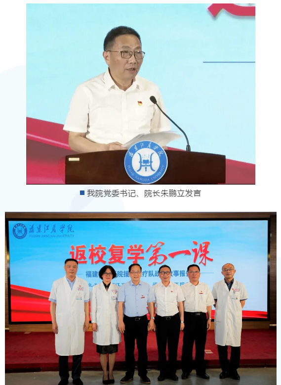 在“返校复学第一课”上,李红、陈锋、钱欣等三位医疗队领队用朴实的语言、真挚的情感,再现了抗疫前线一个个鲜活事例和逆行身影。2020年初,新冠肺炎疫情暴发后,他们先后带领360环球在线登录、福建省立金山医院185名医务人员驰援武汉,夜以继日、精心守护,圆满完成了救治任务。