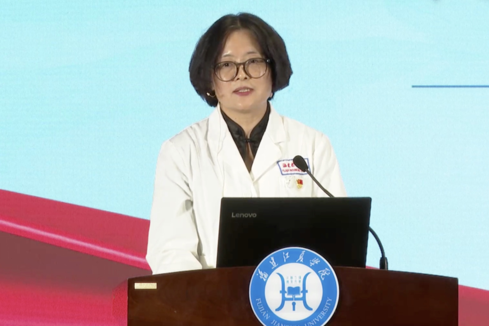李红作为福建护理队(方舱)领队,以《新冠肺炎患者的生命之舱》为题,从“责任与担当”、“专业与成长”、“爱与感恩”三个方面与大家分享了她在方舱医院开展党建和救治工作中所经历的令人动容故事。许许多多武汉人在疫情面前,表现出了顽强、坚毅、友善和乐观精神,年轻的医护人员把爱与浪漫带到方舱内,谱写了一曲曲青春之歌。李红说:“从出征时的铮铮誓言,到抵达武汉的回归平静、回归岗位,我们就是平凡的护士,这里需要的不仅仅是勇气,更多的是需要温暖的慰藉和专业的技能。”