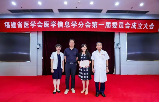 ▲张琼瑶主任(右二)当选福建省医学会医学信息学分会首届主任委员
