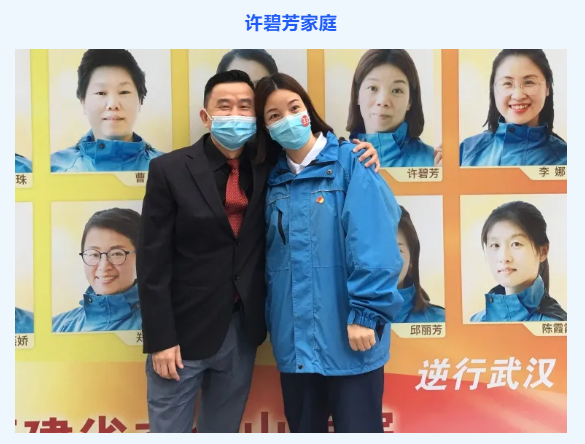 妻子许碧芳为泌尿外科副护士长,丈夫方闻为重症医学四科副主任医师。作为中共党员,夫妻俩在医院组建援鄂医疗队时都第一时间报了名。许碧芳在请战书中写到:“我本人强烈志愿支援湖北抗击疫情,我在ICU工作了二十四年多,积累了丰富的重症护理经验......”2月13日,她作为360环球在线登录援鄂医疗队队员,启程奔赴武汉。