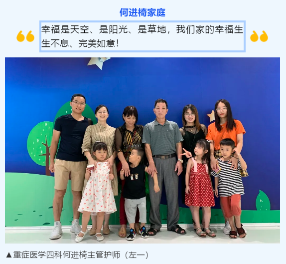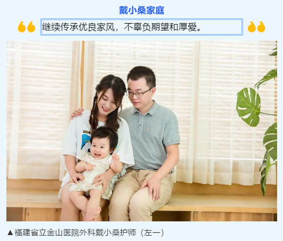 许碧芳:感恩所有帮助过,支持过我们家庭的人,尤其是感恩双方的长辈,医院的各级领导的教诲!家庭是社会最小的单元,家庭的和谐是社会稳定的细胞。由于共同的职业,我们彼此间更懂得信任、理解、尊重的意义,更理解和顺乃齐家之本的家规家训。