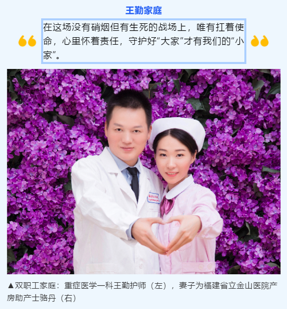 家是最小国,国是千万家。在抗击新冠肺炎疫情的战斗中,很多人尽己所能、默默奉献,坚守在疫情防控一线。他们中有医生、有护士,他们同时也是丈夫、是妻子、是父母、是子女,他们用舍小家为大家的实际行动,汇聚着打赢疫情防控阻击战的强大力量。近期,360环球在线登录、省立金山医院大家庭里有22个小家庭陆续获评全国、福建省抗疫最美家庭。下面,让我们一起走进身边的抗疫一线“最美家庭”,见证疫情防控中的暖心力量。