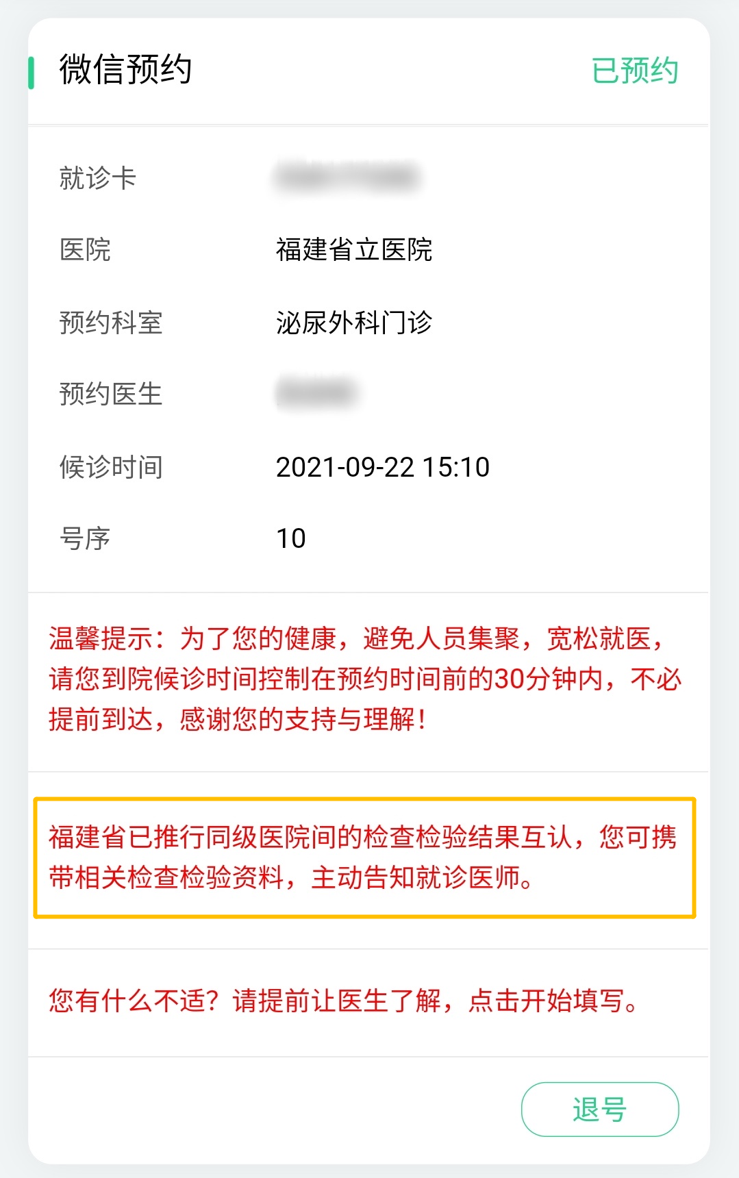 ▲在医院微信公众号预约界面告知患者已推行检验检查结果互认