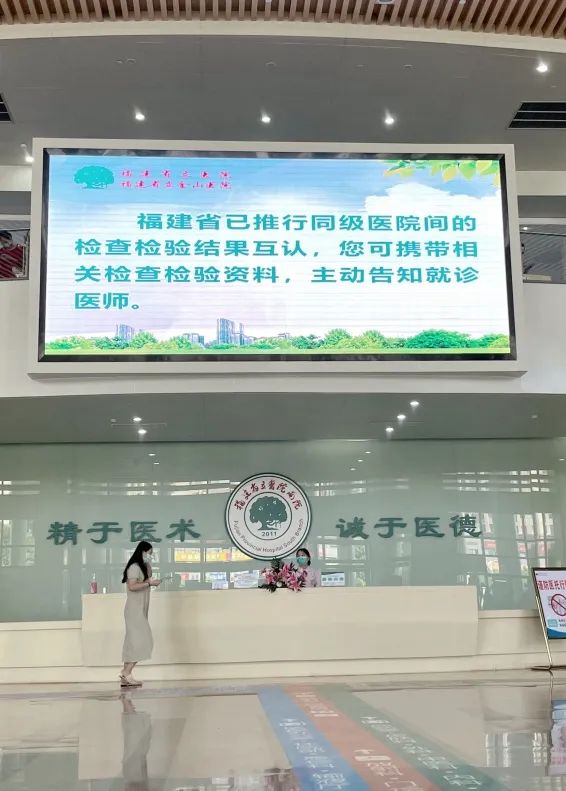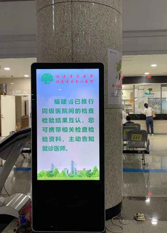 在门诊醒目位置设立展板、显示屏告知患者,对该项工作进行全院部署,做到全体医护人员知晓,切实推进医学检查检验结果互认助力医疗数据互联互通工作。
