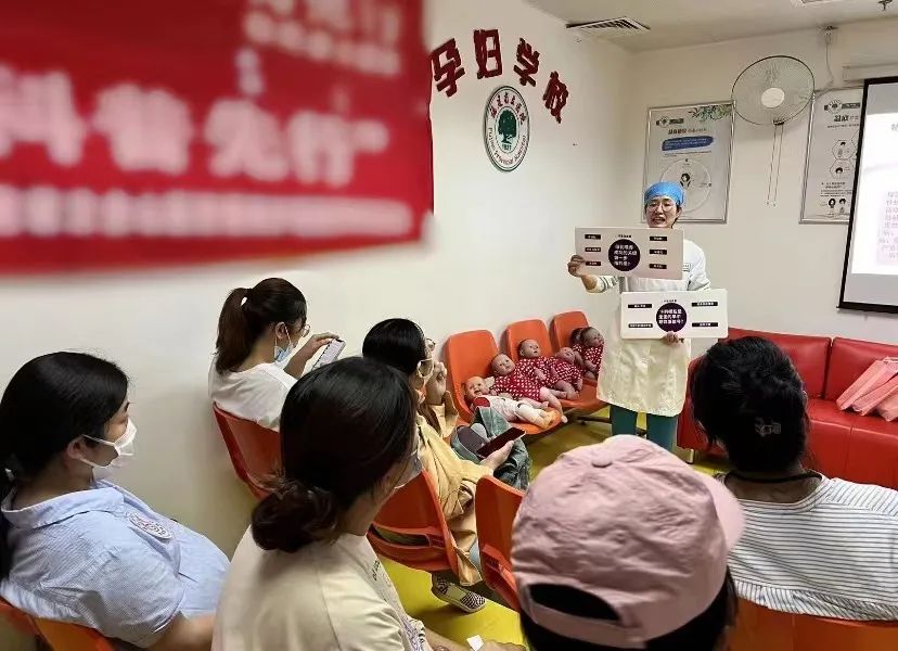 产科、母婴护理专科医护人员联合开展母乳喂养宣传,在门诊楼2层为前来就诊的孕妈妈及参加孕妇学校的宝妈们分享专题讲座并答疑解惑。“母乳喂养有哪些好处?”“产后涨奶怎么办?”……团队详细讲解母乳喂养的正确方法、促进乳汁分泌等知识,孕妈妈们积极参与、踊跃回答、亲身体验操作,活动现场气氛活跃。