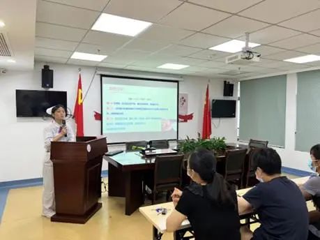 母婴护理专科在专科组长卓瑞燕副主任护师的带领下,前往五凤街道湖前社区卫生服务中心,为社区工作人员、哺乳期妈妈、准爸爸准妈妈解读母乳喂养指南,普及母乳喂养相关知识、技能及误区等,提高社区居民对母乳喂养的理解和支持度,促进哺乳妈妈及准妈妈的哺乳喂养技能掌握。