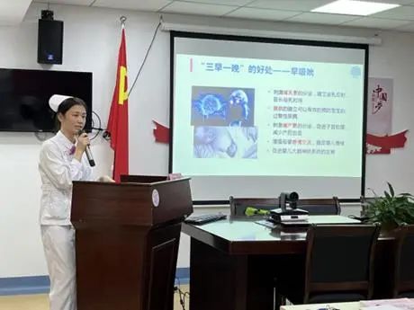▲翁频仔主管护师分享《激发宝宝潜能:三早一晚》