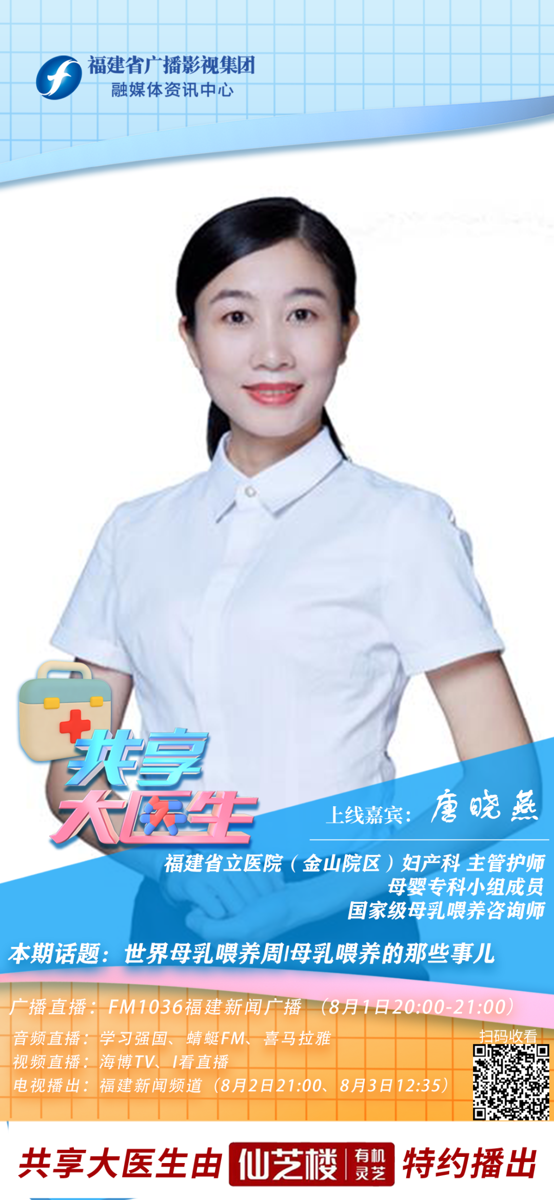 金山院区妇产科、母婴护理专科唐晓燕主管护师受邀到福建新闻广播《共享大医生》栏目直播间,与大家分享母乳喂养的好处、母乳喂养对建立良好的亲子关系的作用及科学的母乳喂养方法等,对全省在线听众朋友们关心的问题给予专业的回复。直播活动反响热烈,吸引了近3万人次收听观看。