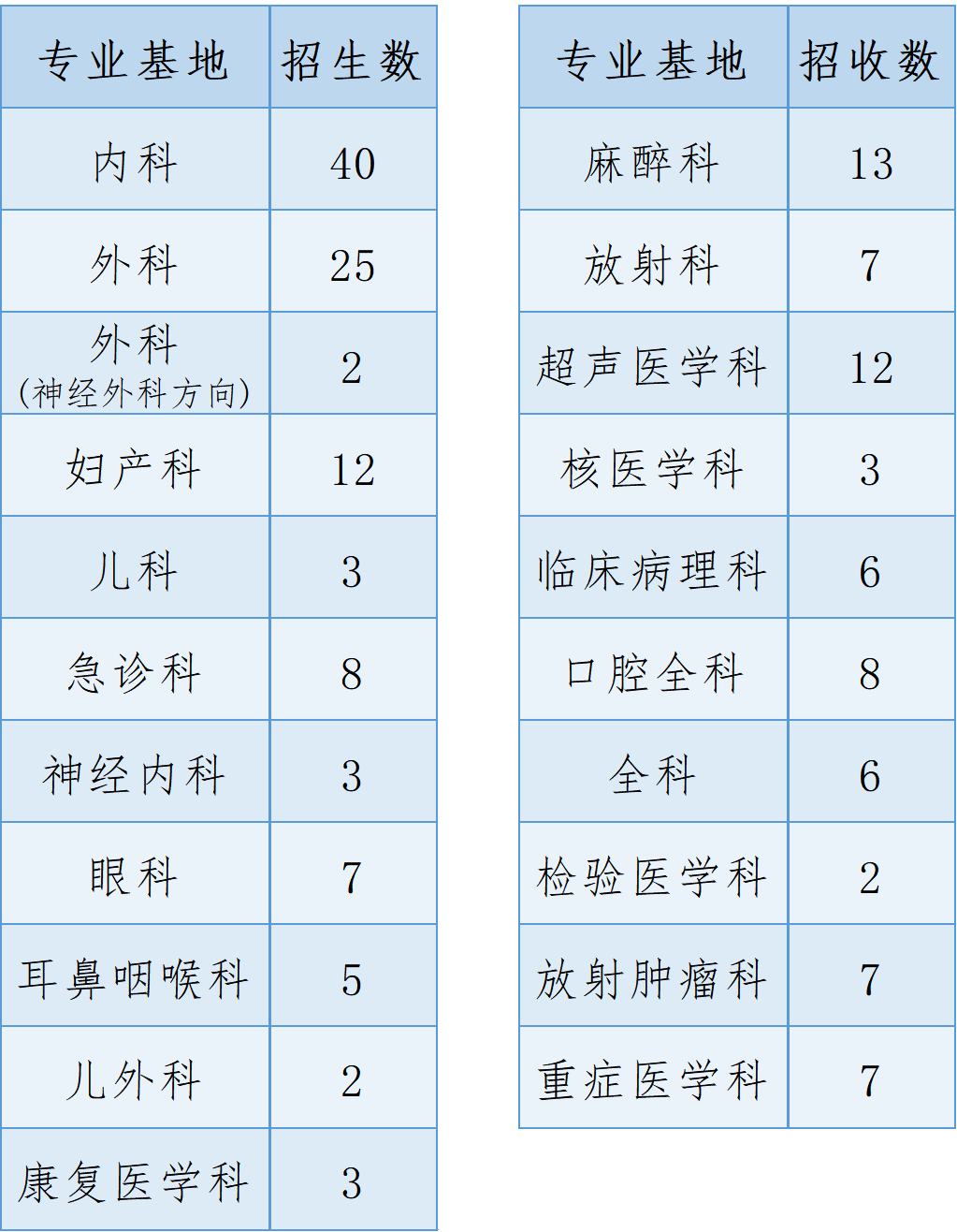 注:我院各专业基地招生人数如上,各培训基地各专业的实时报名情况,可在个人账户选择专业处进行查阅(具体以系统说明为准)。