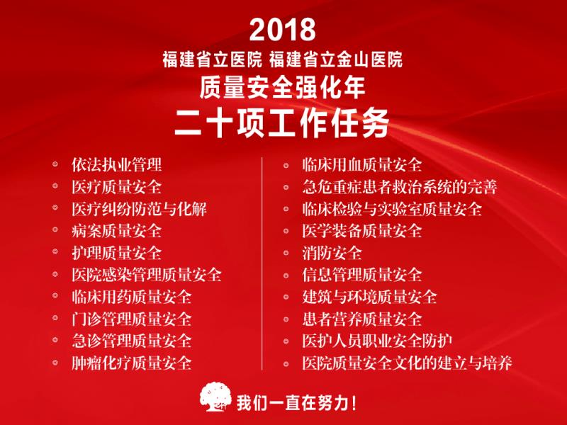 【质量安全强化年】“2018360环球在线登录 福建省立金山医院质量安全强化年十大核心目标”发布