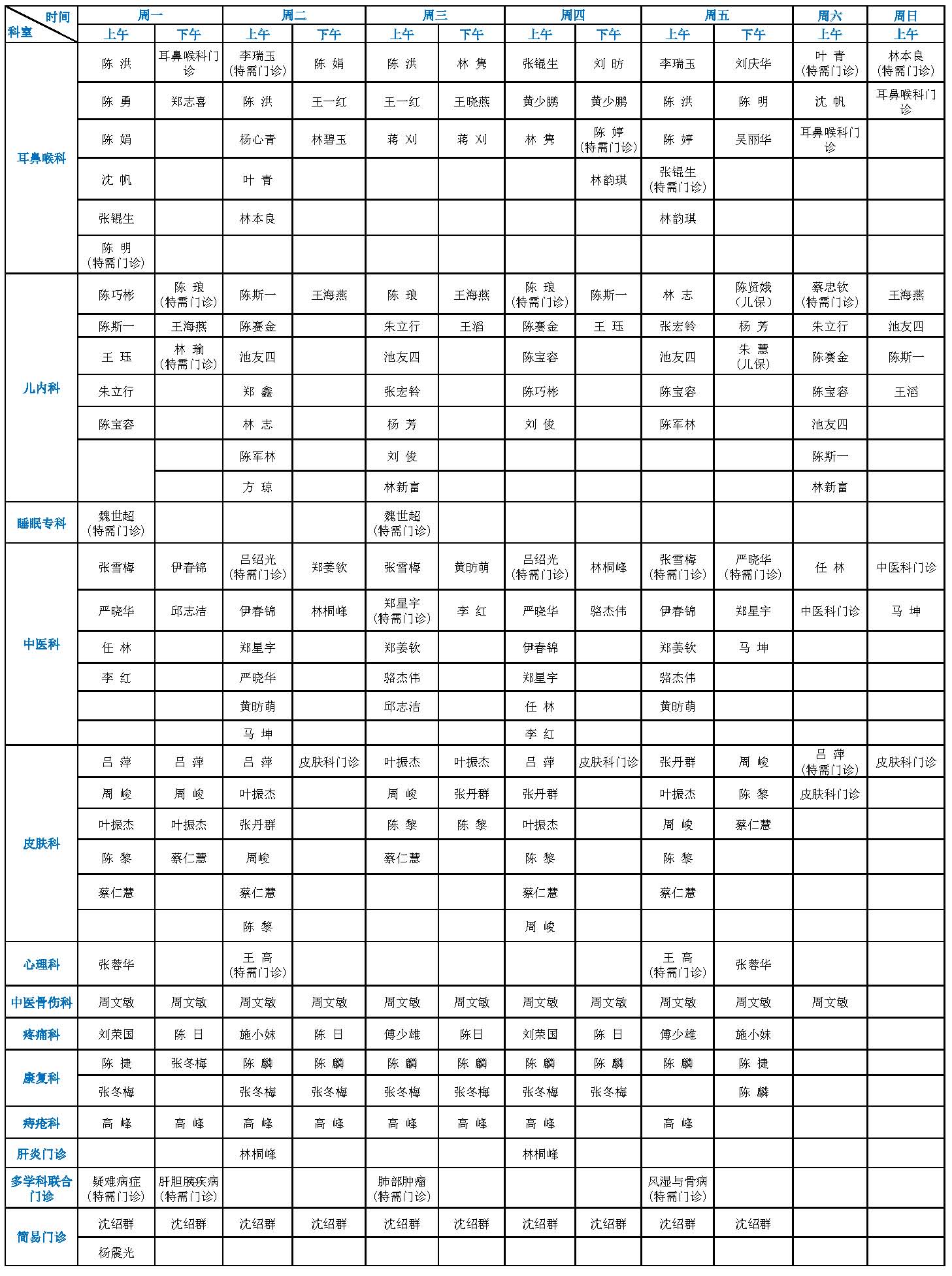【温馨提示】点击可查看大图!(注:专家门诊如有临时变动,以院方当日公布为准!)