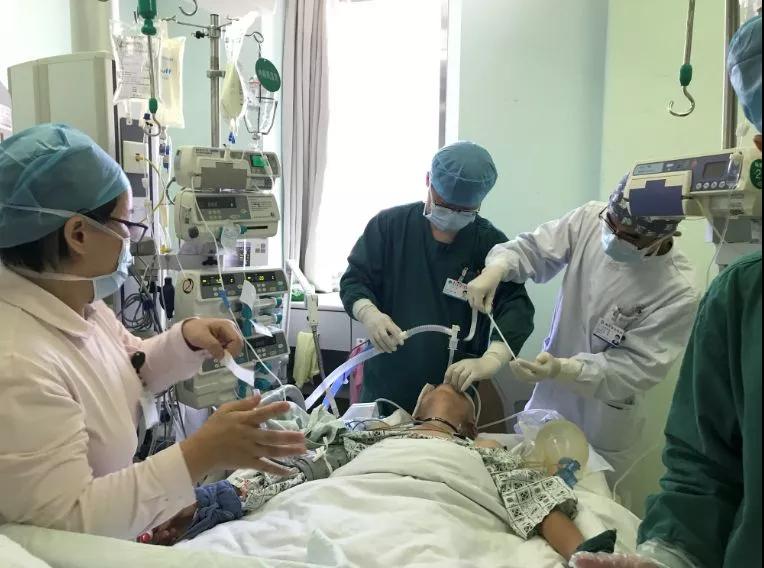 医护人员在ICU内为患者行气管插管