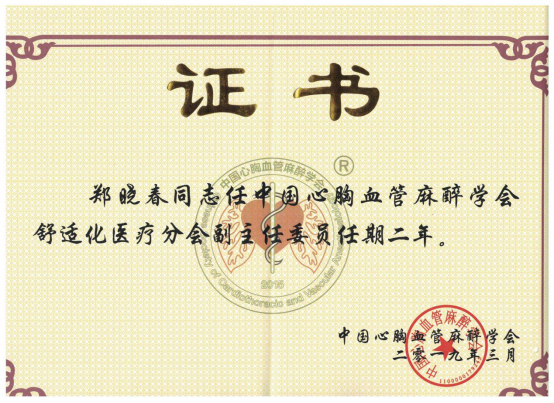 近日,中国心胸血管麻醉学会成立舒适化医疗分会,我院郑晓春教授担任第一届委员会副主任委员。随着医疗技术的进步,患者从原本解除病痛的基本需求,转变为追求舒适化医疗的更高需求,希望在整个就医过程中达到心理和生理上愉悦感,舒适化医疗已成为未来医学的发展方向。