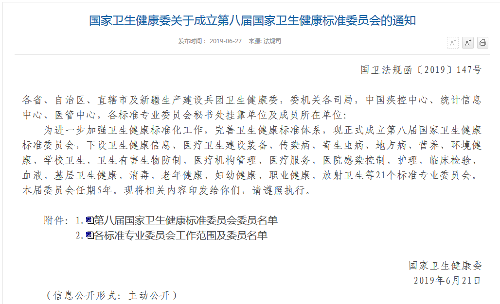 据悉,第八届国家卫生健康标准委员会主任委员由国家卫生健康委党组书记、主任马晓伟担任,委员由国家卫生健康委领导和各司局主要负责人、各专业委员会主任委员共46名领导和专家组成。委员会及专委会的成立,旨在进一步加强卫生健康标准化工作,完善卫生健康标准体系。