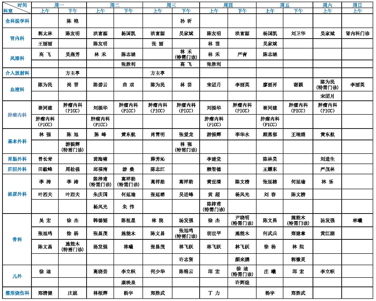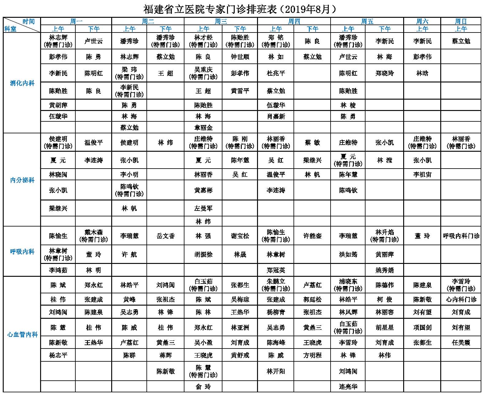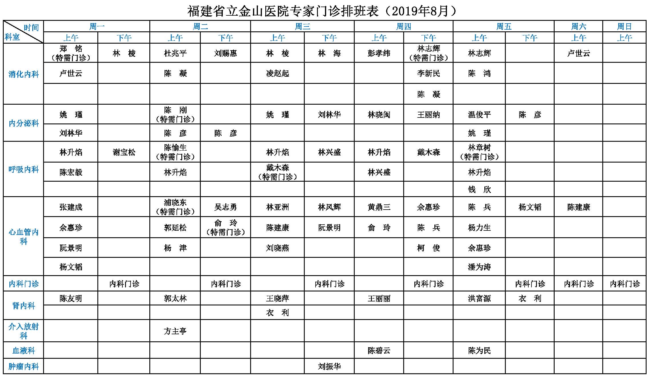 福建省立金山医院专家门诊一览表