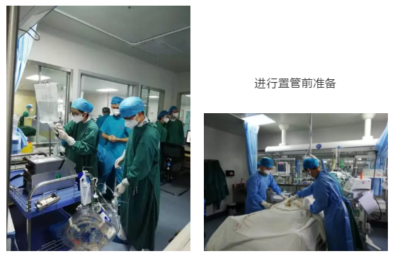 抵达莆田市第一医院后,全体团队成员立即投入紧张的救治工作。团队成员熟练分工合作,各司其职,有条不紊的进行着机器调试、ECMO管路预冲、B超下血管探查、穿刺部位的消毒、铺巾、动静脉穿刺置管等等。经过1个多小时的努力,ECMO治疗顺利运转,患者呼吸逐渐平稳,血氧饱和度明显提高,血压趋于稳定。患者好转的讯息让家属焦虑的心结稍稍放松,也为参与抢救的医护人员增添了信心。