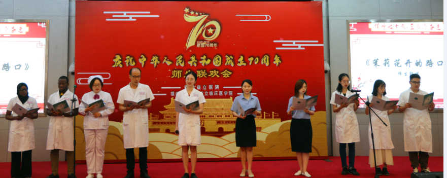 9月24日下午,省立临床医学院举办“辉煌七十载•医路齐奋进”庆祝中华人民共和国成立70周年师生联欢会暨优秀教师表彰大会,院领导朱鹏立、李红、陈锋、郑晓春出席大会,与师生们欢聚一堂,并为优秀教师颁奖。这也是我院住培医师、研究生、医学实习生、护理实习生首次大联欢。