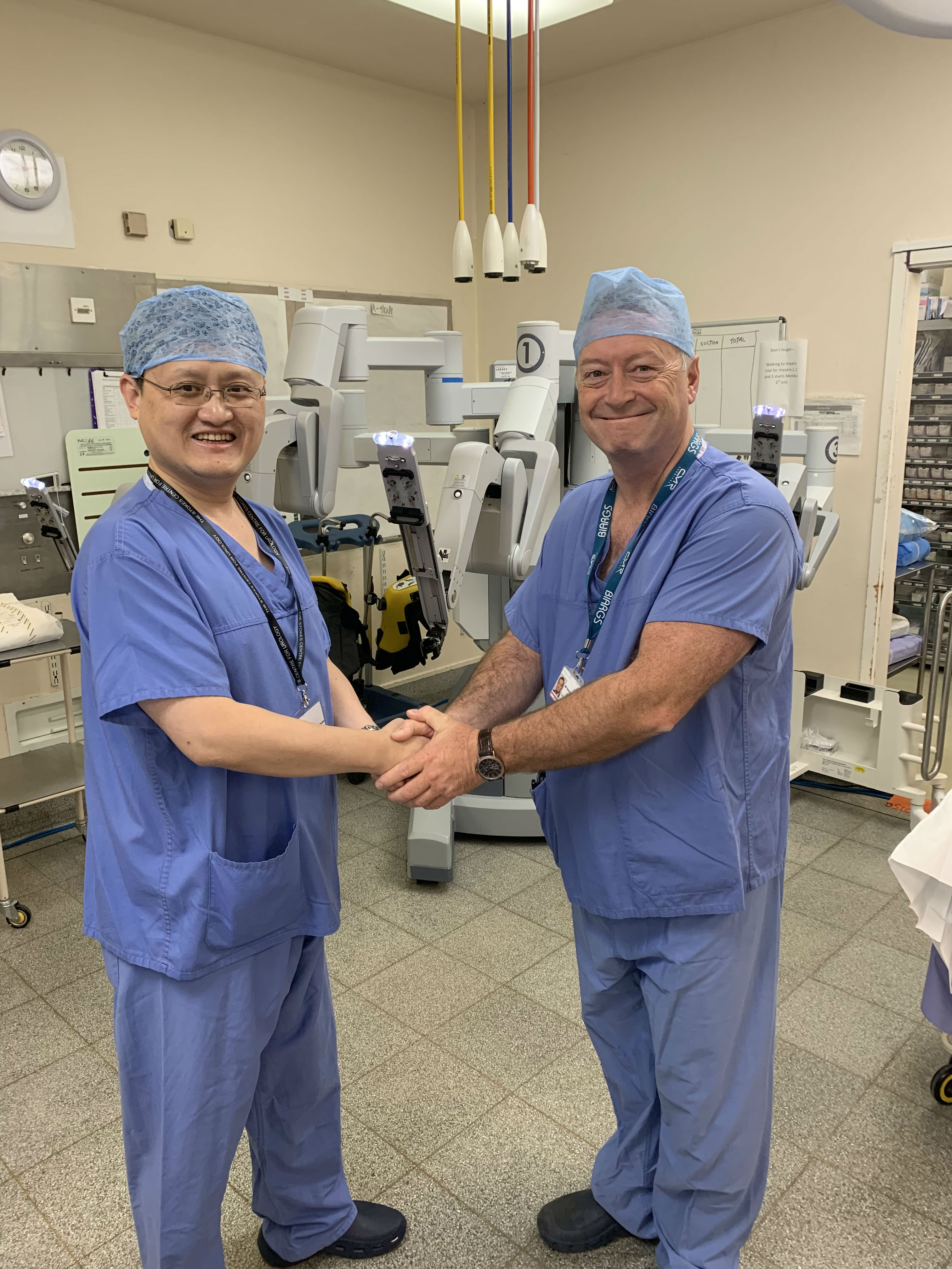 妇科团队由妇科副主任孙阳带队,观摩了子宫内膜癌机器人手术及腹腔妇科团队由妇科副主任孙阳主任医师带队,观摩了子宫内膜癌机器人手术及腹腔镜手术、卵巢癌开腹手术等各种类型的妇科恶性肿瘤复杂手术。在手术观摩中,皇家萨里郡医院妇科主任Simon教授邀请我院专家坐在机器人副操作台,以第一视角感受手术系统的独到之处。访学交流期间,妇科团队还参与了医院日常诊疗工作,包括专科门诊、MDT讨论、妇科放疗及手术病人的住院诊治流程等。双方深入沟通,为今后开展学科交流打下基础。