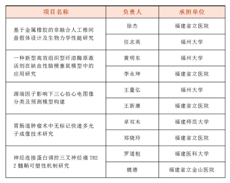 第五轮福建省卫生教育联合攻关计划项目资助计划目录(省立、省立金山医院)