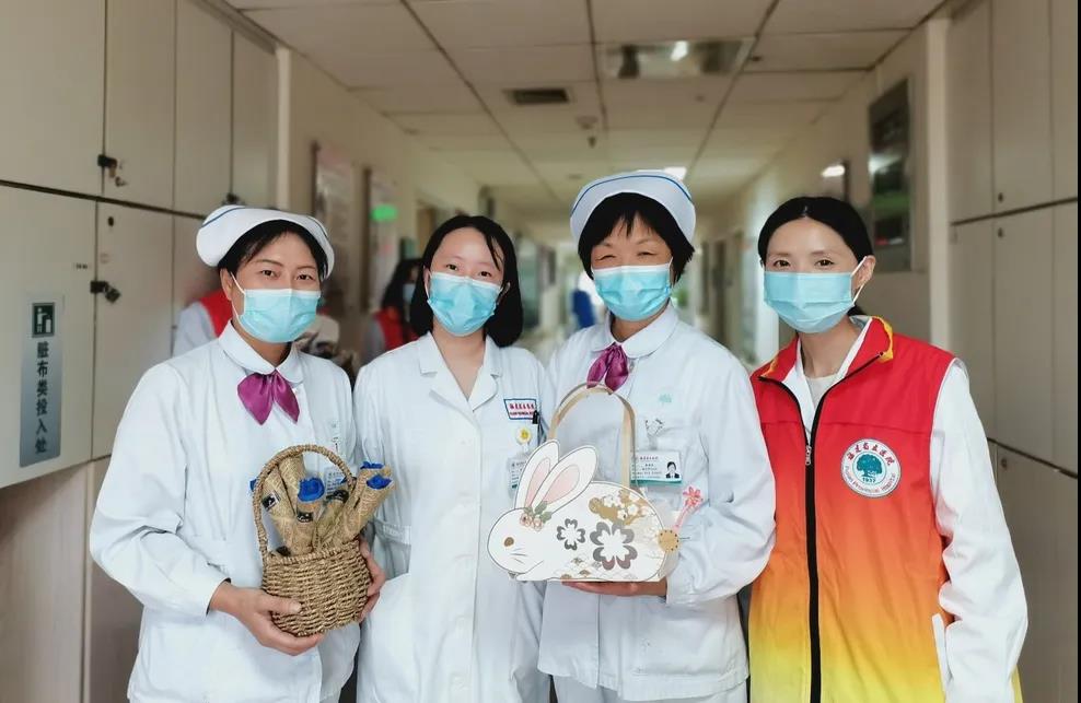 护士长和志愿者到病房里诚挚邀请各位患者及家属参加活动,为他们献上美好中秋节日祝福。