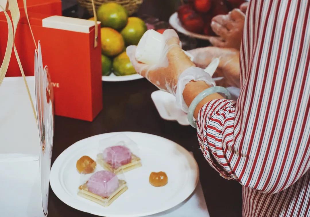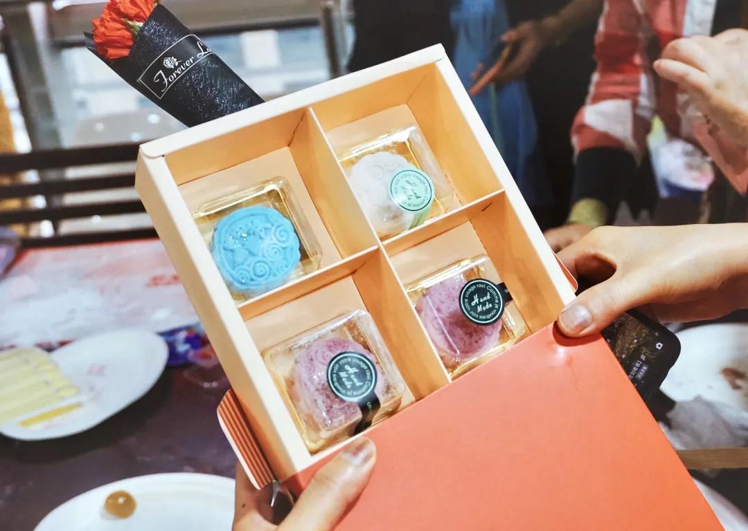 制作月饼的同时,大家相互交流着制作心得。捏馅儿、擀面皮、包月饼、用模具压花……小巧精致的冰皮月饼“争先恐后”从大家手中诞生。