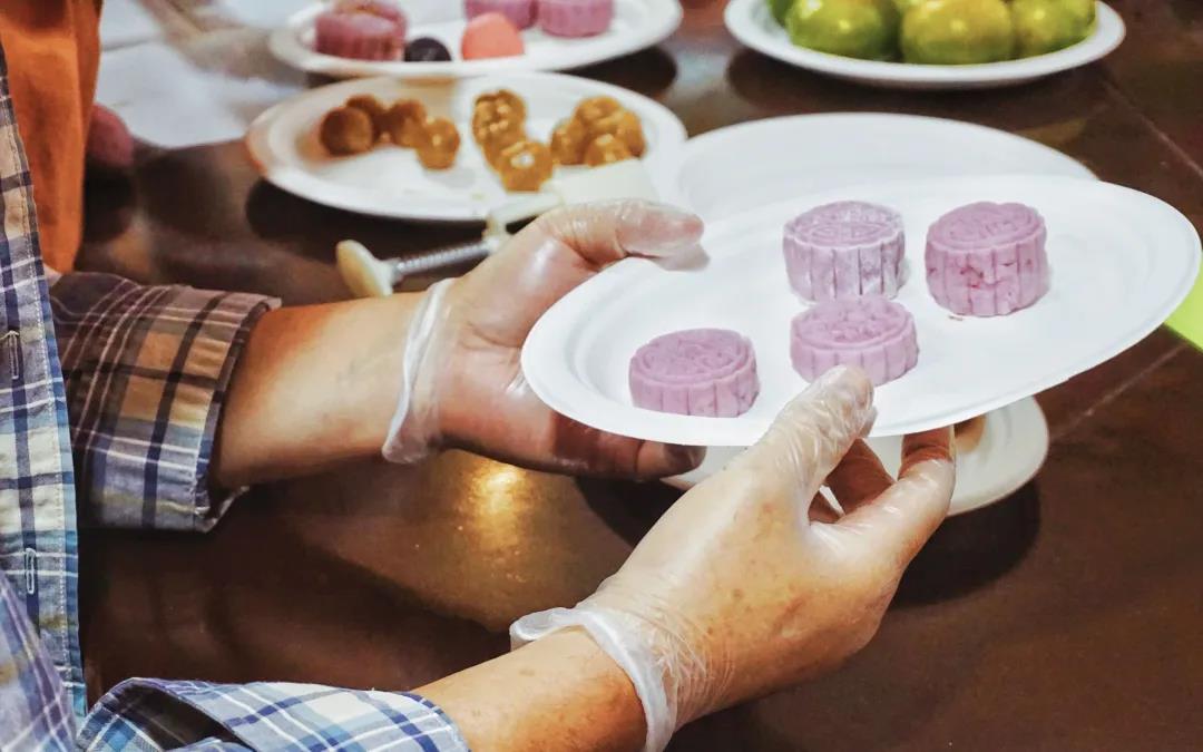 活动现场,邀请了专业老师对冰皮月饼的制作进行指导。志愿者和医务人员提前布置好场地,营造浓浓的节日氛围。