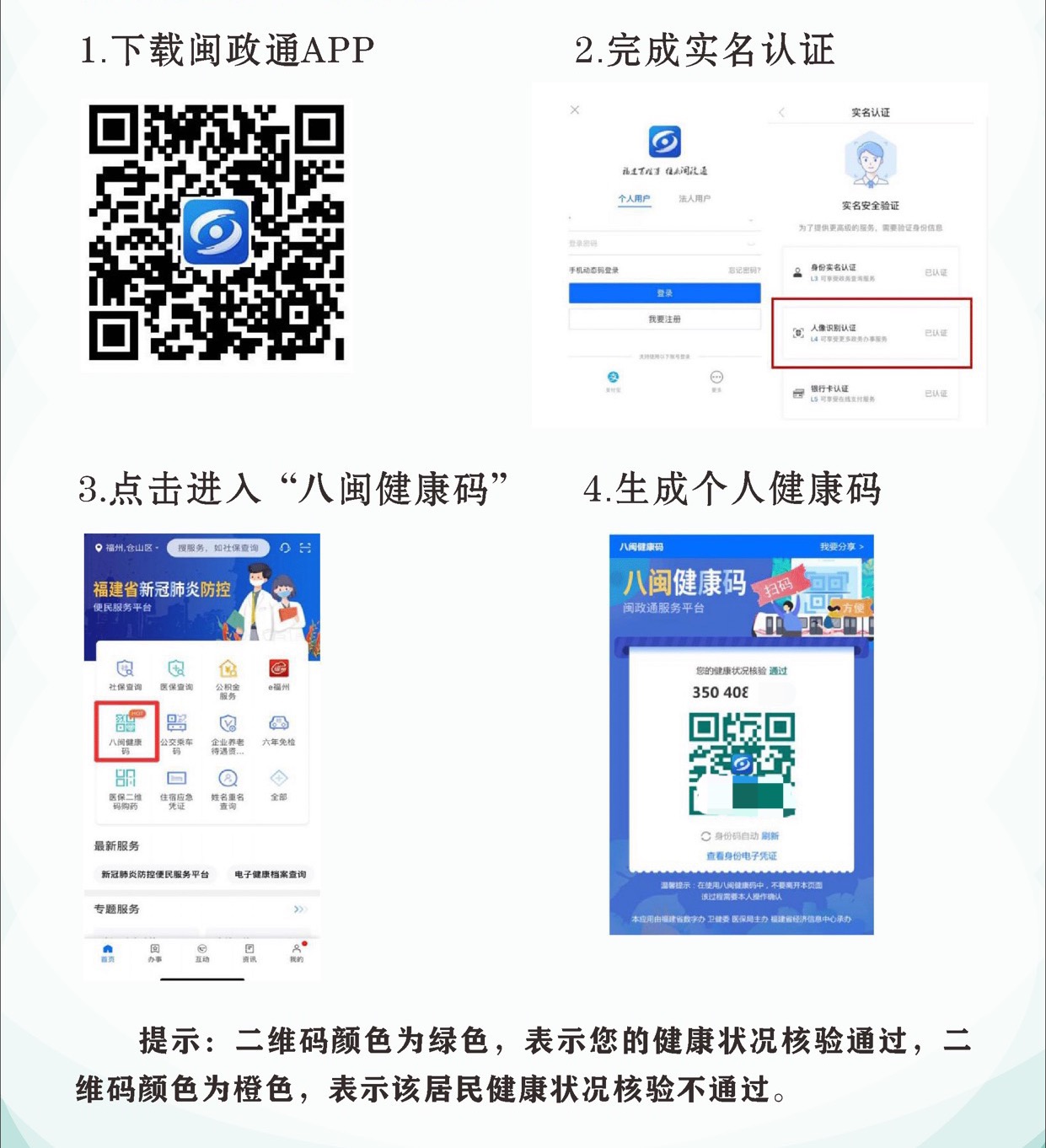 ●所有人员进入院区应持八闽健康码、佩戴口罩,并自觉接受体温监测。