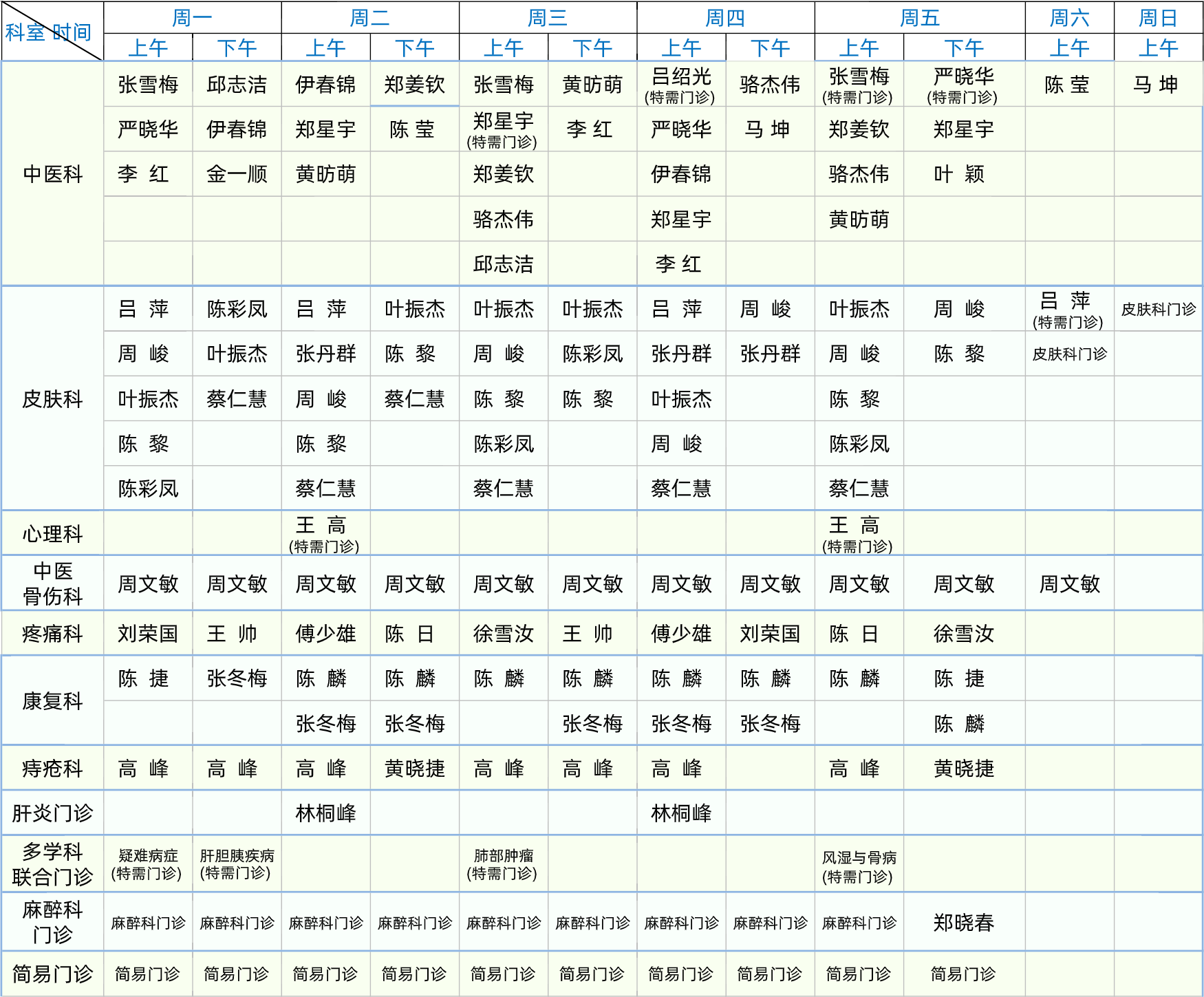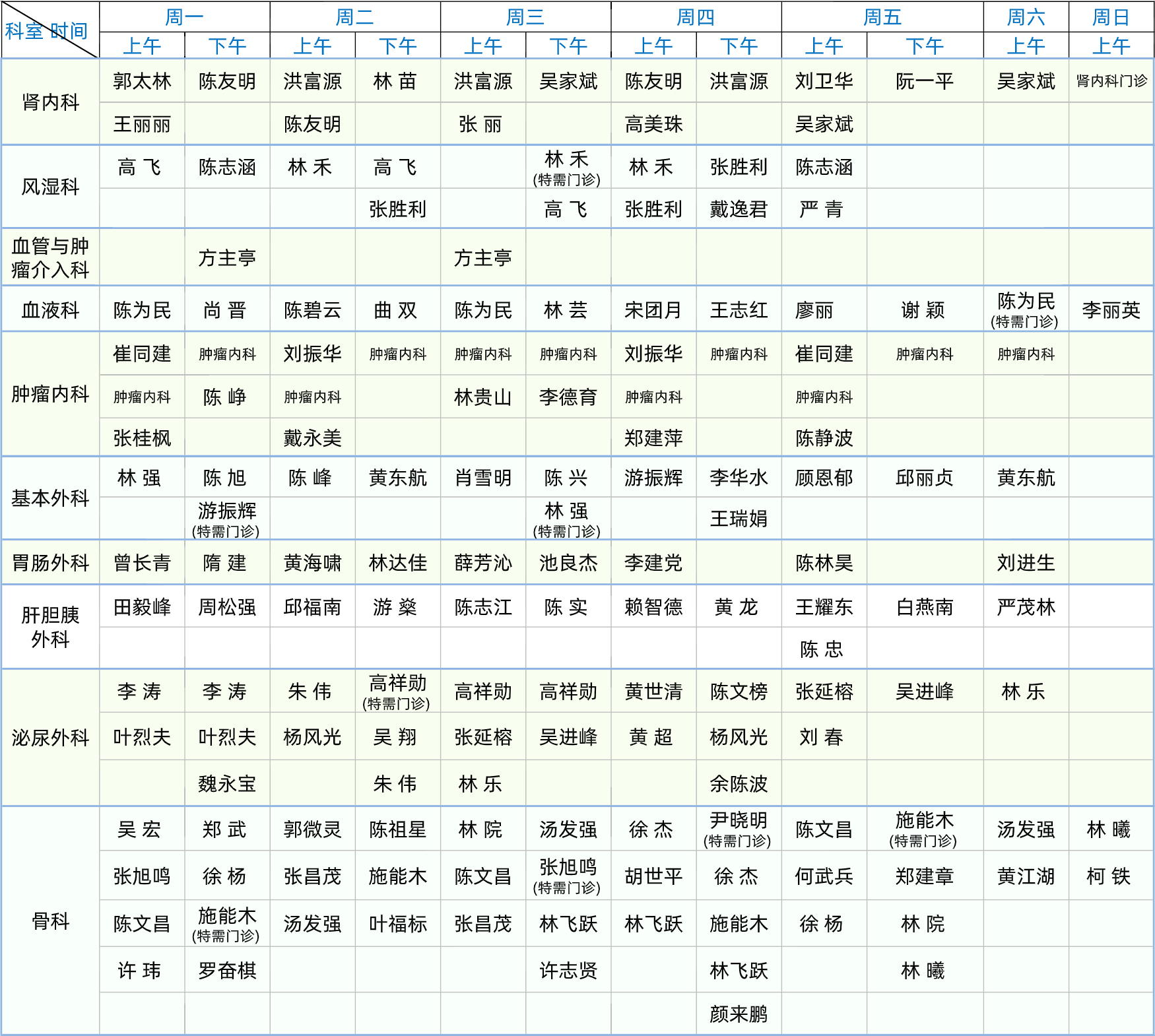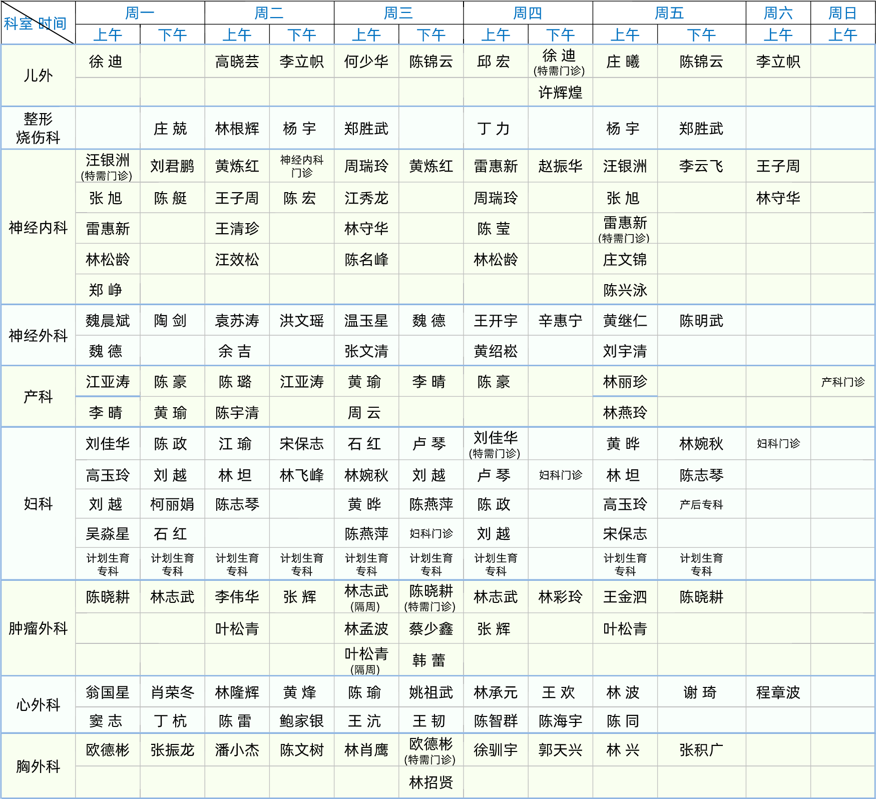 (注:专家门诊如有临时变动,以院方当日公布为准!)