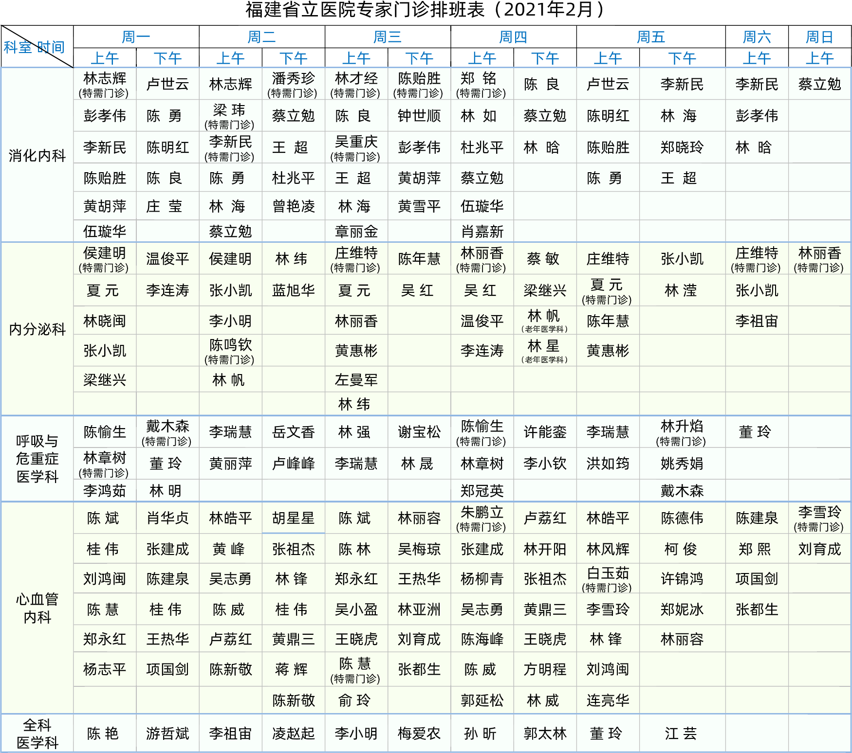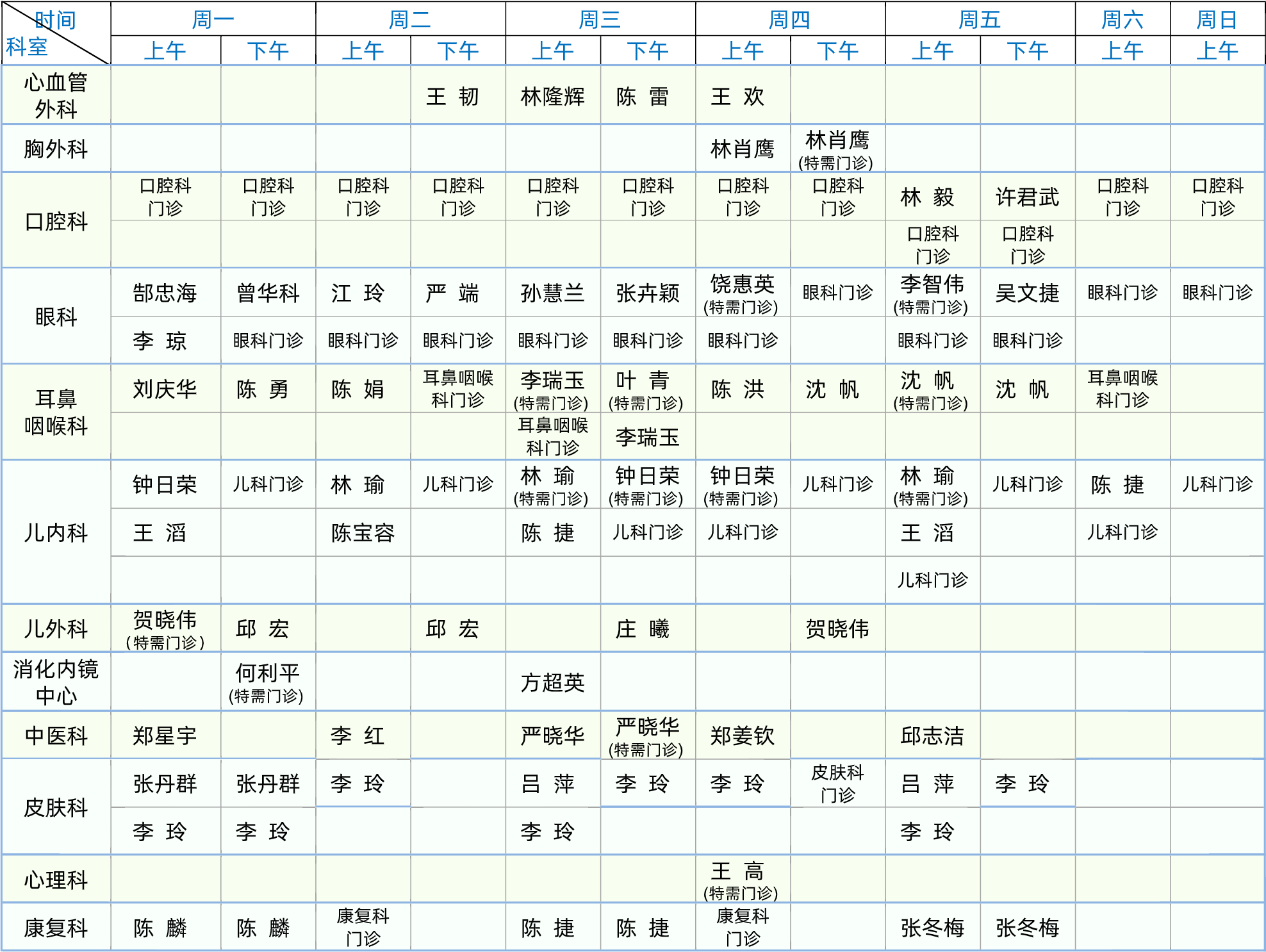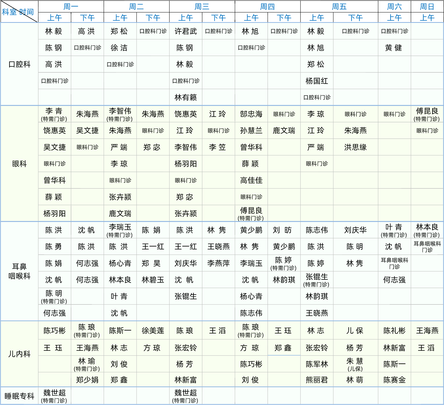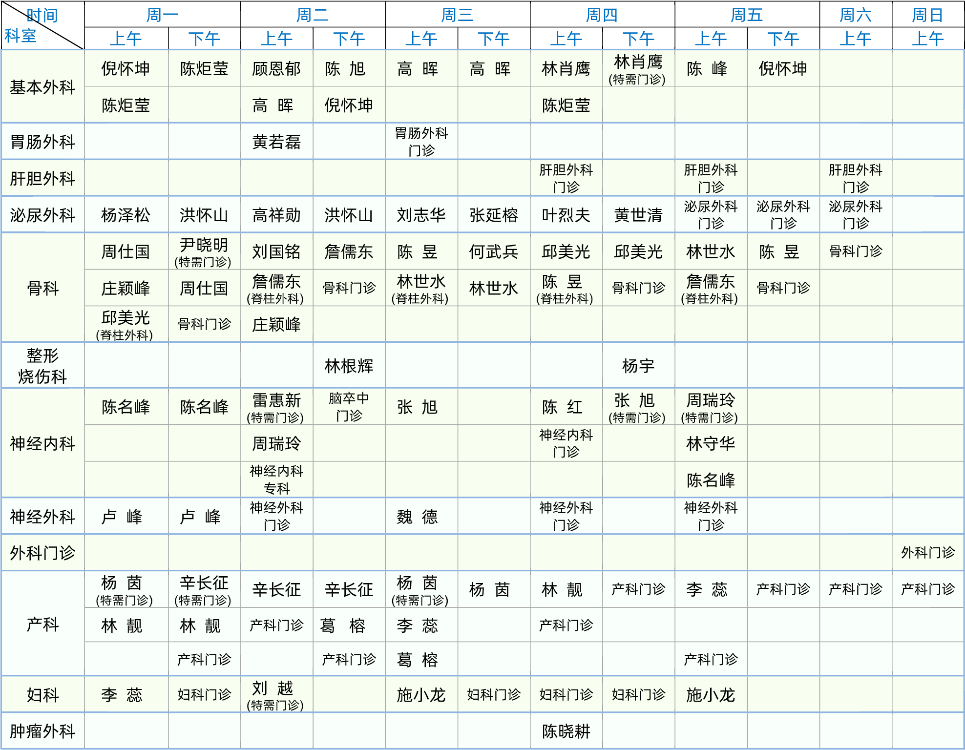 (注:专家门诊如有临时变动,以院方当日公布为准!)