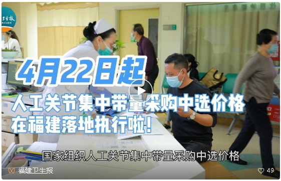 “这些年,我在宁德霞浦等偏远山村义诊时,就发现很多关节疾病患者因为关节置换手术费用高昂,一直长期忍痛,以至于影响了日常生活。”汤发强说,“此次集采落地实施进一步减轻了患者负担,从而帮助他们提高生活质量。”
