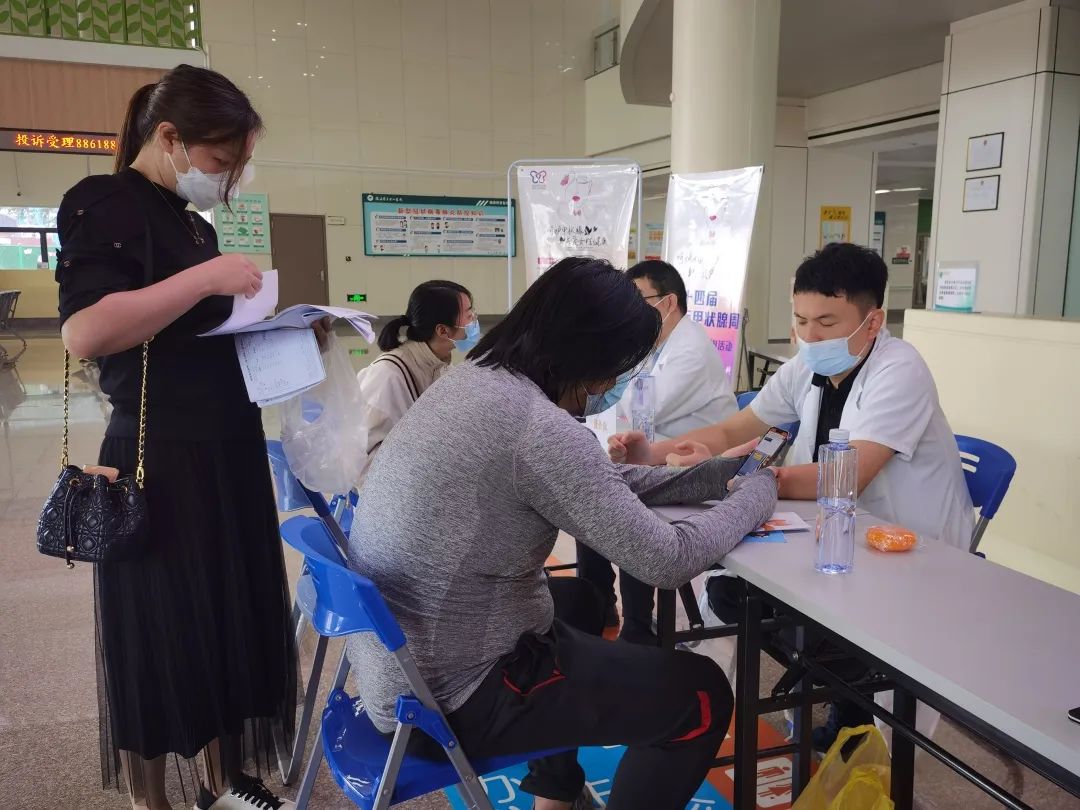 义诊现场,各位专家耐心为患者答疑解惑,对甲亢、甲减、甲状腺炎、甲状腺结节等甲状腺疾患的筛查、诊断、治疗、预后、随访等相关知识进行详细解答,并进行甲状腺健康科普知识宣教。帮助大家了解甲状腺疾病的相关症状,对疾病形成正确的认知,建立科学防治的理念。