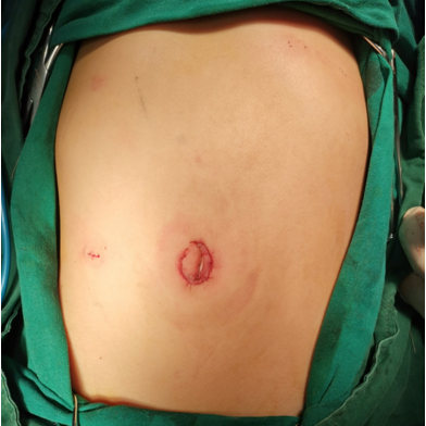 2005年随着腹腔镜时代来临,儿外科于全省率先开展小儿腹腔镜手术,但分散于腹壁的多个切口术后瘢痕明显,难以掩藏手术痕迹。在缺乏单孔设备的年代,儿外科经过技术改良,在2016年开创了“单部位”腹腔镜手术。将3个腹腔镜手术切口,完全隐匿于脐轮的生理凹陷中,术后腹壁无手术瘢痕,只有“深邃而性感”的脐轮。