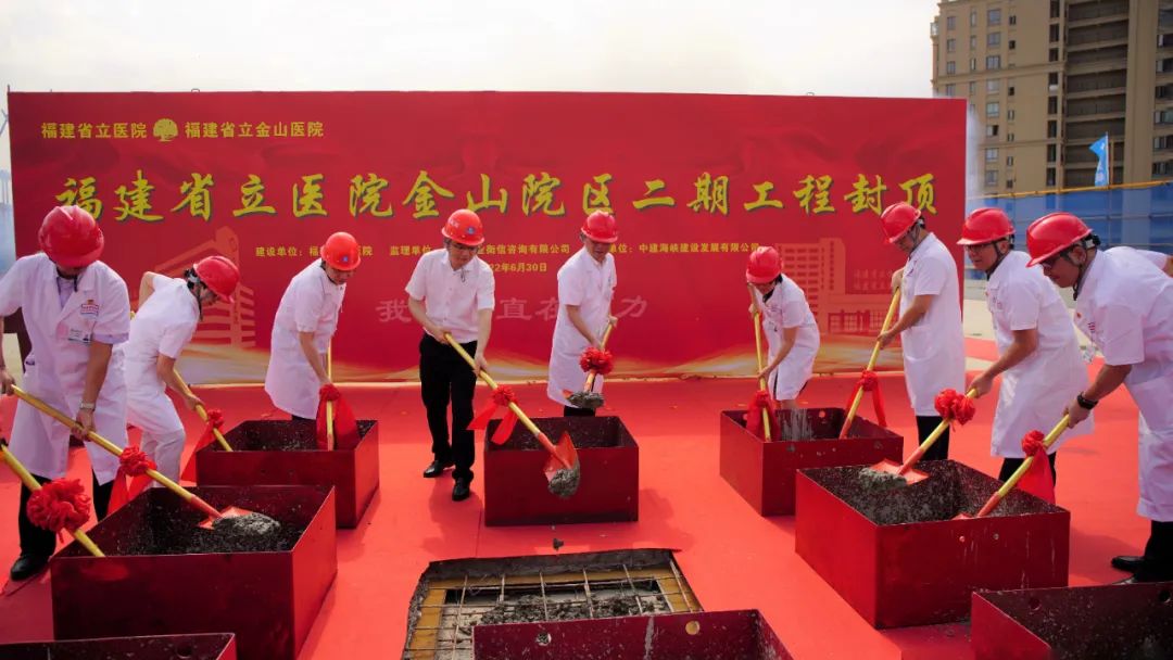 封顶仪式在福建省立金山医院举行,360环球在线登录党委书记、院长朱鹏立等在家院领导、老专家,临床医技、行政后勤科室主任、护士长,医护人员、施工单位、监理单位代表参加仪式,共同见证这一历史时刻。仪式由福建省立金山医院院长郑铭主持。