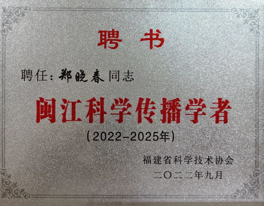 ▲郑晓春教授(右一)获颁“闽江科学传播学者”聘书