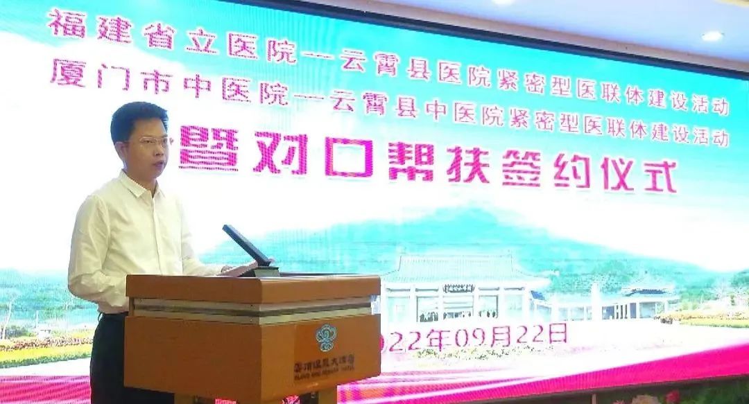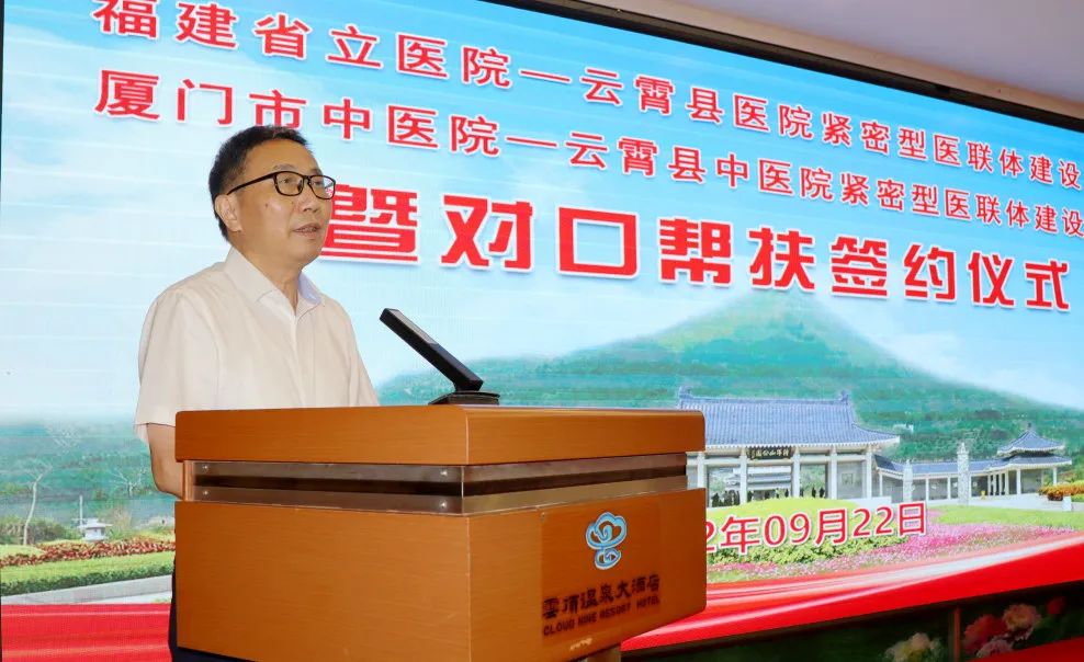 朱鹏立书记发言时指出,省立医院高度重视合作帮扶工作,始终把对基层医院的关心、帮助作为自身的责任和担当。此次结合云霄县医院实际需求,我院派出具有较强管理能力和专科特长的年轻骨干担任云霄县医院业务院长、副院长、科主任,目的在于实现两院管理和业务“双紧密”,推动新技术新项目“沉”下去,薄弱学科“赶”上来,重点专科“显”出来,管理短板“补”齐来,基层服务能力“实”起来。他同时勉励挂职干部要用心用情用力做好各项帮扶工作,形成协同合作长效机制,推动基层医疗高质量发展。