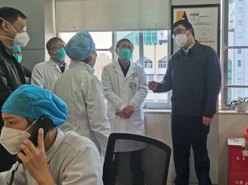 杨闽红一行详细了解120指挥调度、急诊科医疗救治、患者分级分类诊疗落实等情况。目前,120指挥调度中心的呼入量最高峰超5000个电话每日,较以往增加了10倍,日完成派车任务亦翻倍。医院急诊数量持续攀升,日均接诊800-900人次,日均入室抢救人数近百人次,呈持续高位。