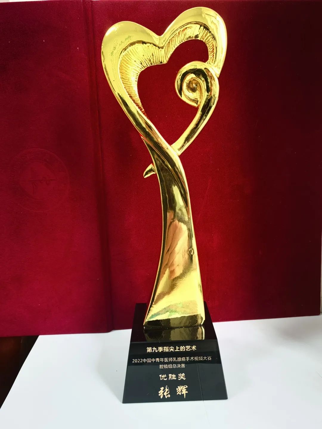 “指尖上的艺术”中国中青年乳腺癌手术大赛由中国医师协会乳腺专委会、中国抗癌协会乳腺癌专委会、中国人体健康促进会共同举办,是乳腺外科专业最具权威性的比赛之一。大赛设置经典组、重建组和腔镜组比赛项目,通过作品选拔、晋级赛、总决赛等层层角逐,选拔乳腺专业领域优秀精英。张辉副主任医师分享的一例乳腺癌手术“腋窝入路单孔腔镜下全乳切除+胸肌后假体置入乳房再造术”,在林孟波教授指导下完成,指征明确、手术规范、视野清晰,术后疗效优异,获得专家评委一致认可。