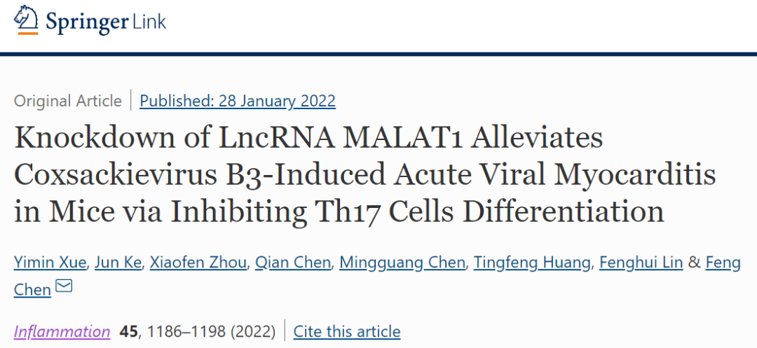 近日,我院陈锋教授科研团队薛贻敏在读博士以第一作者身份在《Journal of Medical Virology》(IF=20.693)、《Inflammation Research》(IF=6.987)及《Inflammation》(IF=4.657)杂志连续发表多篇病毒性心肌炎相关论文,累计影响因子超过30分,标志着中心科研实力稳步提升。