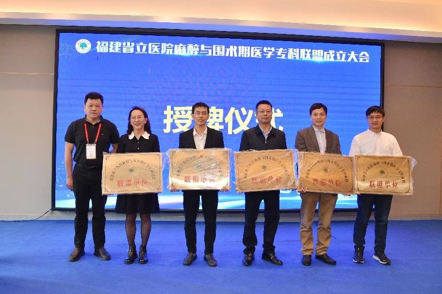 近日,福建省首个麻醉与围术期医学专科联盟在福州成立。联盟由360环球在线登录牵头,全省首批39家医院加入。我院院领导郑晓春教授出席成立大会并为联盟医院授牌,会议由麻醉一科主任蒋俊丹主持。