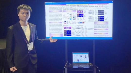 在读硕士研究生黄永鑫分享围术期利多卡因静脉输注引起老年脑阿兹海默病理症状与认知障碍的机制探索。